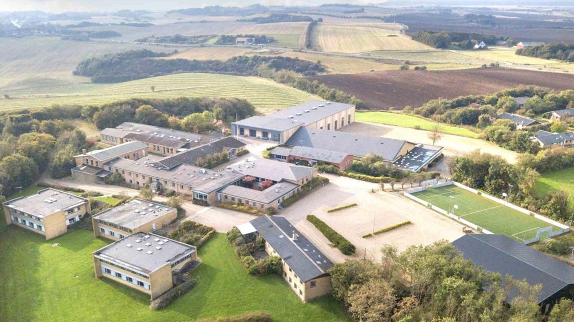 Thy Sportsefterskole holder til i de bygninger, der før har dannet ramme for den tidligere Thylands Efterskole. Foto: Thy Sportsefterskole