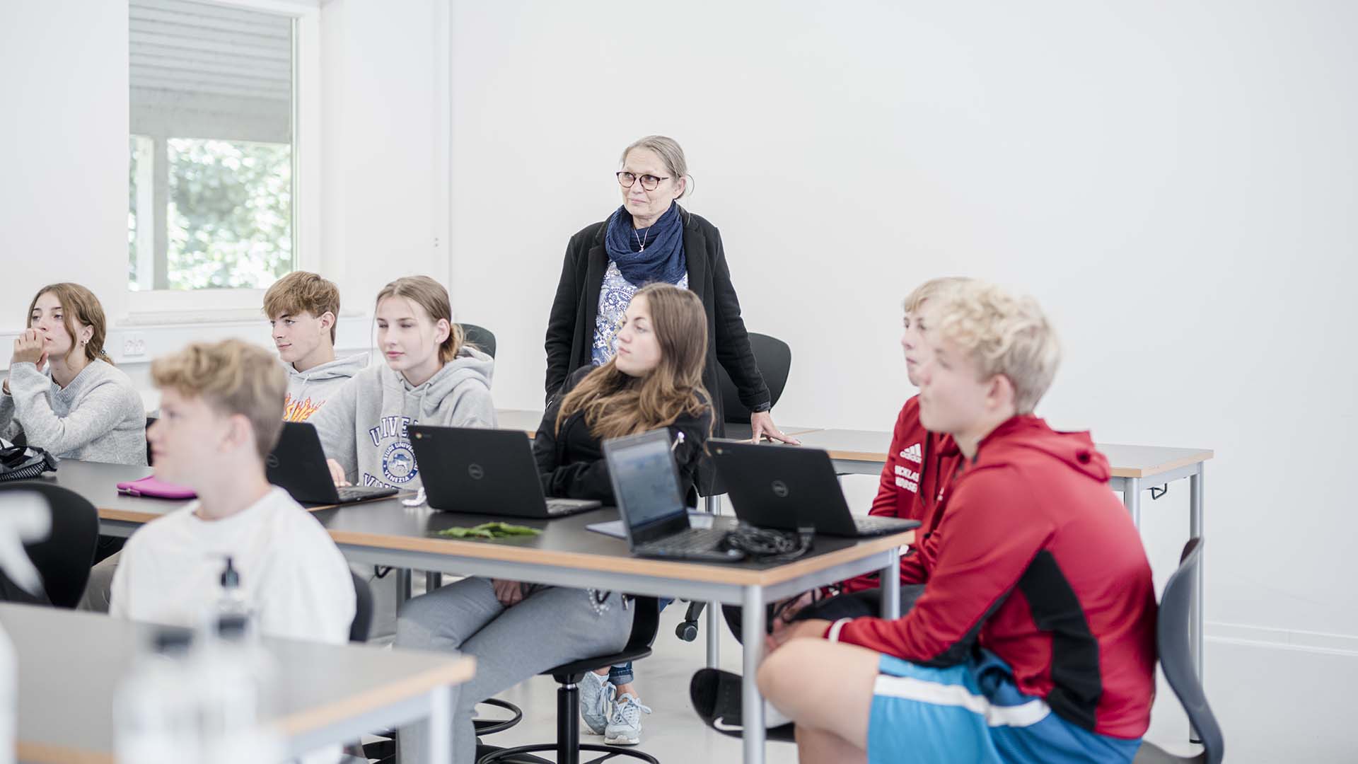 ”Vi er en almen efterskole. Vi tror på, at når du bevæger dig i hovedet og i kroppen, så udvikler du dig som menneske. Vi holder fast i fortælletimer, sangtimer og den demokratiske dannelse, fordi vi tror, det er godt at have plantet vores fødder i vores kultur,” siger Jytte Aggeboe.